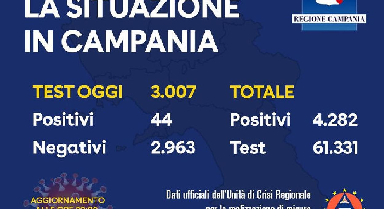 Coronavirus In Campania Il Bollettino Ufficiale Solo 44 Nuovi